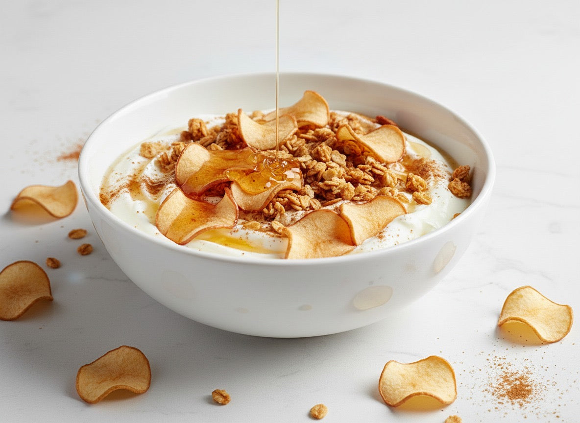 This yogurt bowl blends creamy yogurt with the light crunch of SUN TALE apple chips for a naturally sweet–tart bite .It’s a quick, energizing option for breakfast, post-workout, or an afternoon snack.